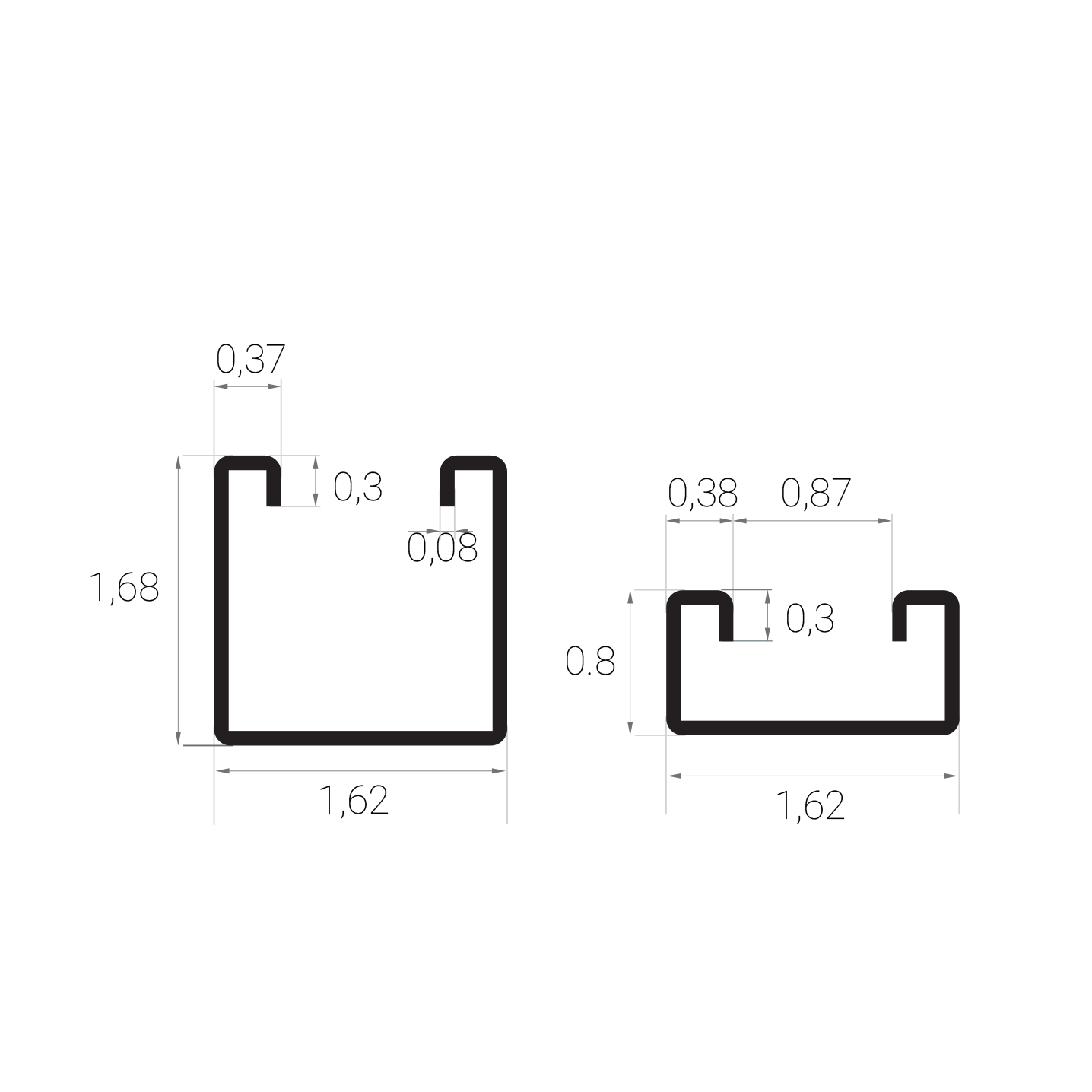 Moment of Inertia(I) 0.13 / 5.24 in.4 / cm4